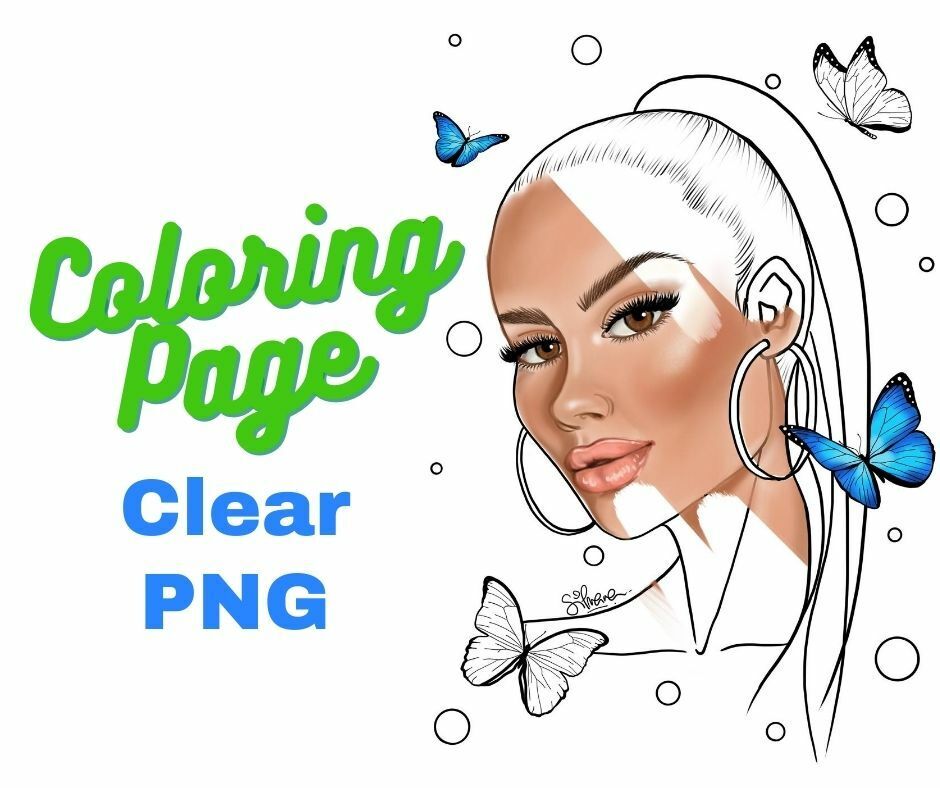 GIRL WITH BUTTERFLIES Coloring Page PNG